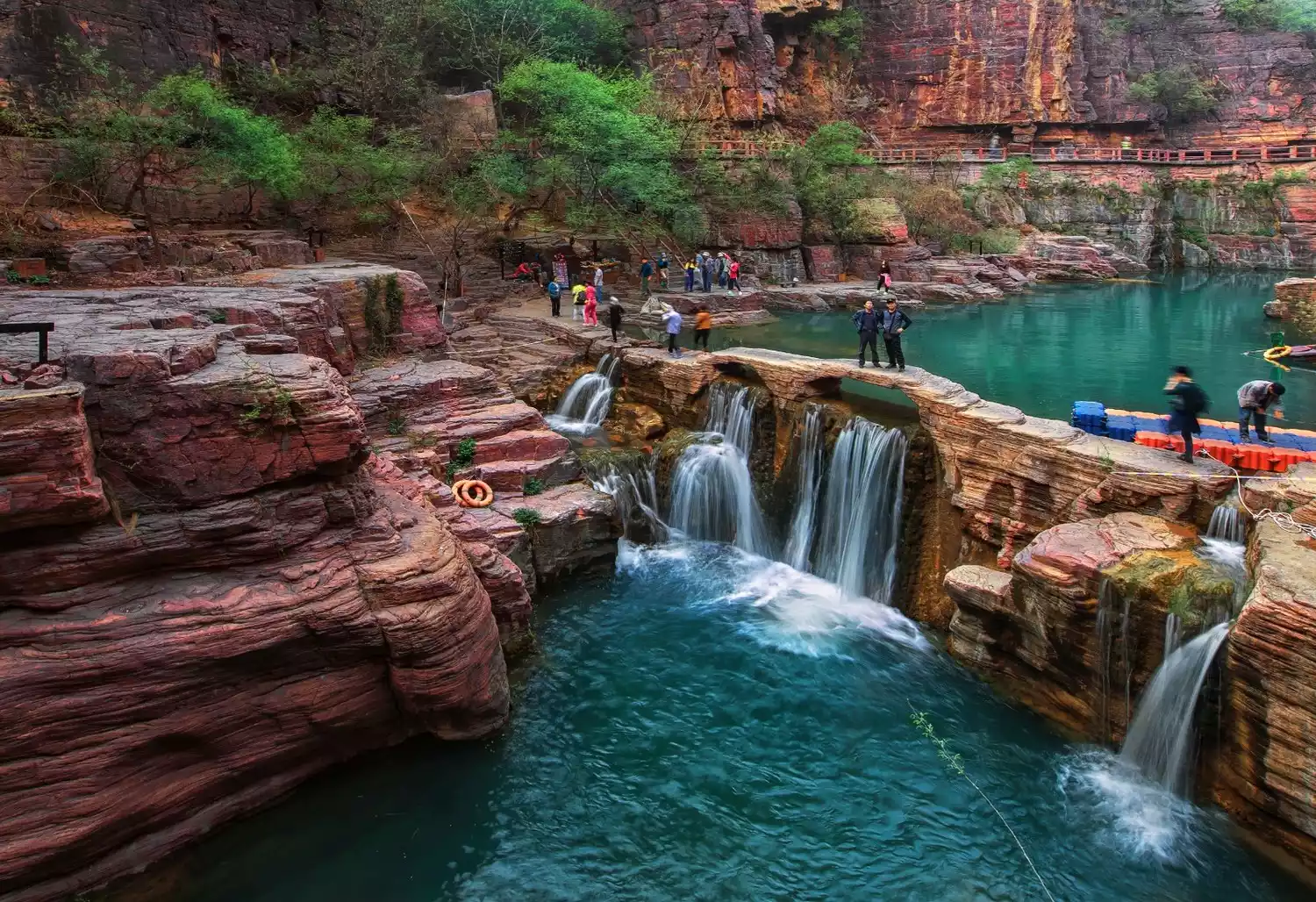 The rock walls are all red, so it is called "Red Stone Gorge", also known as "the first scene in Central Plains". The scenic area is beautiful, secluded, majestic and dangerous. There are springs, waterfalls, streams and pools in one valley. The temperature is 25 degrees all year round, making it a good place to escape the summer heat.