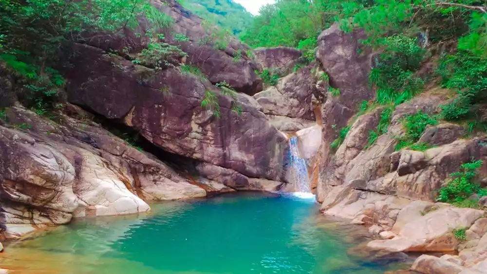 Enjoy an exhilarating rafting trip under the shade of the trees in the mountains of southern Anhui. The rafting journey, 88 meters in height, takes 1.5 hours and 2,000 meters down the scenic Wolong Valley. Enjoy breathtaking views of the canyon's stunning cliffs, cascading waterfalls, and picturesque scenery.