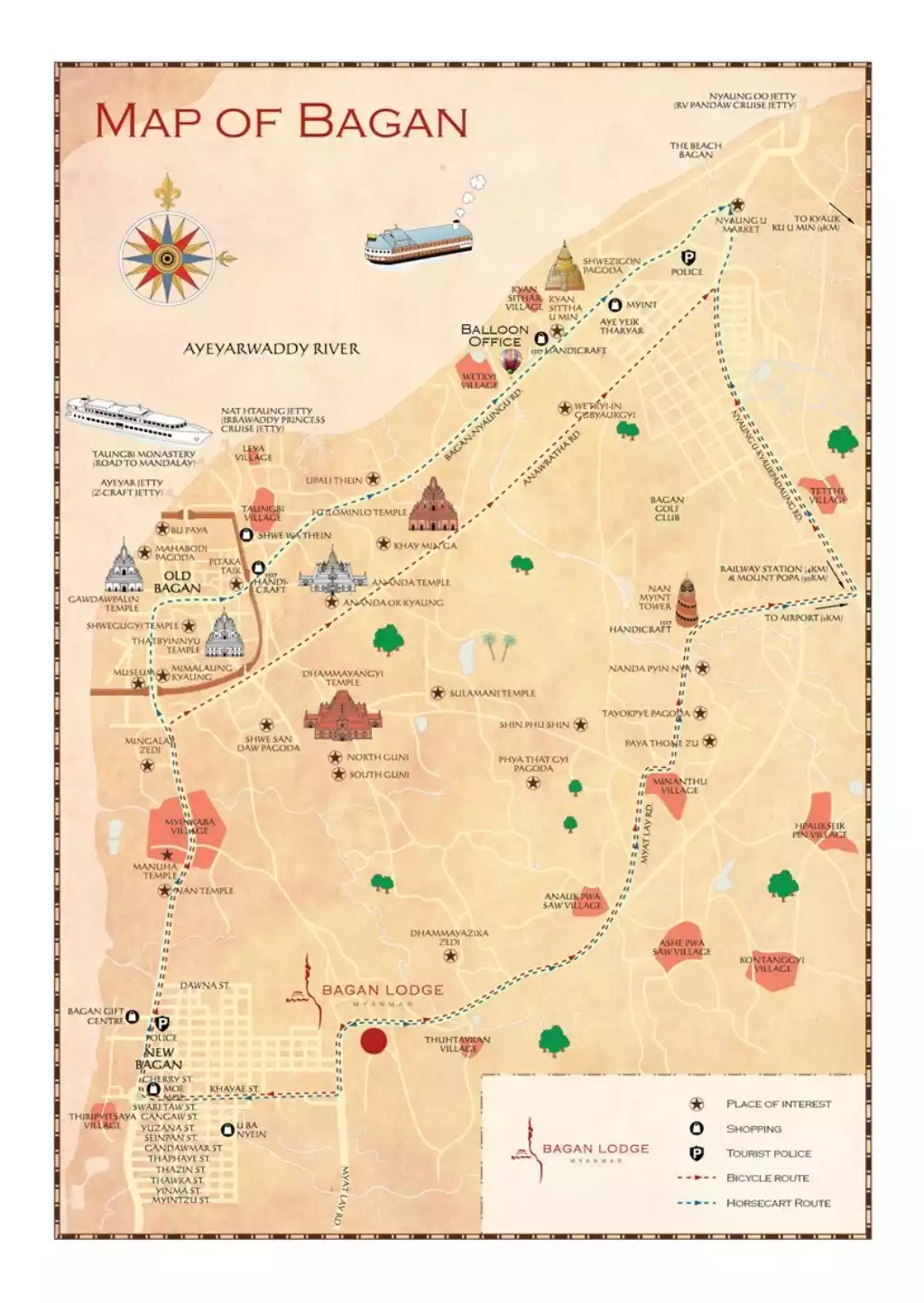 Bagan is an ancient historical city in Myanmar, one of the three major Buddhist relics in Asia, and a famous tourist destination. It is located in the central part of the country, on the left bank of the middle reaches of the Irrawaddy River. The Irrawaddy River flows slowly from the north and west of Bagan.