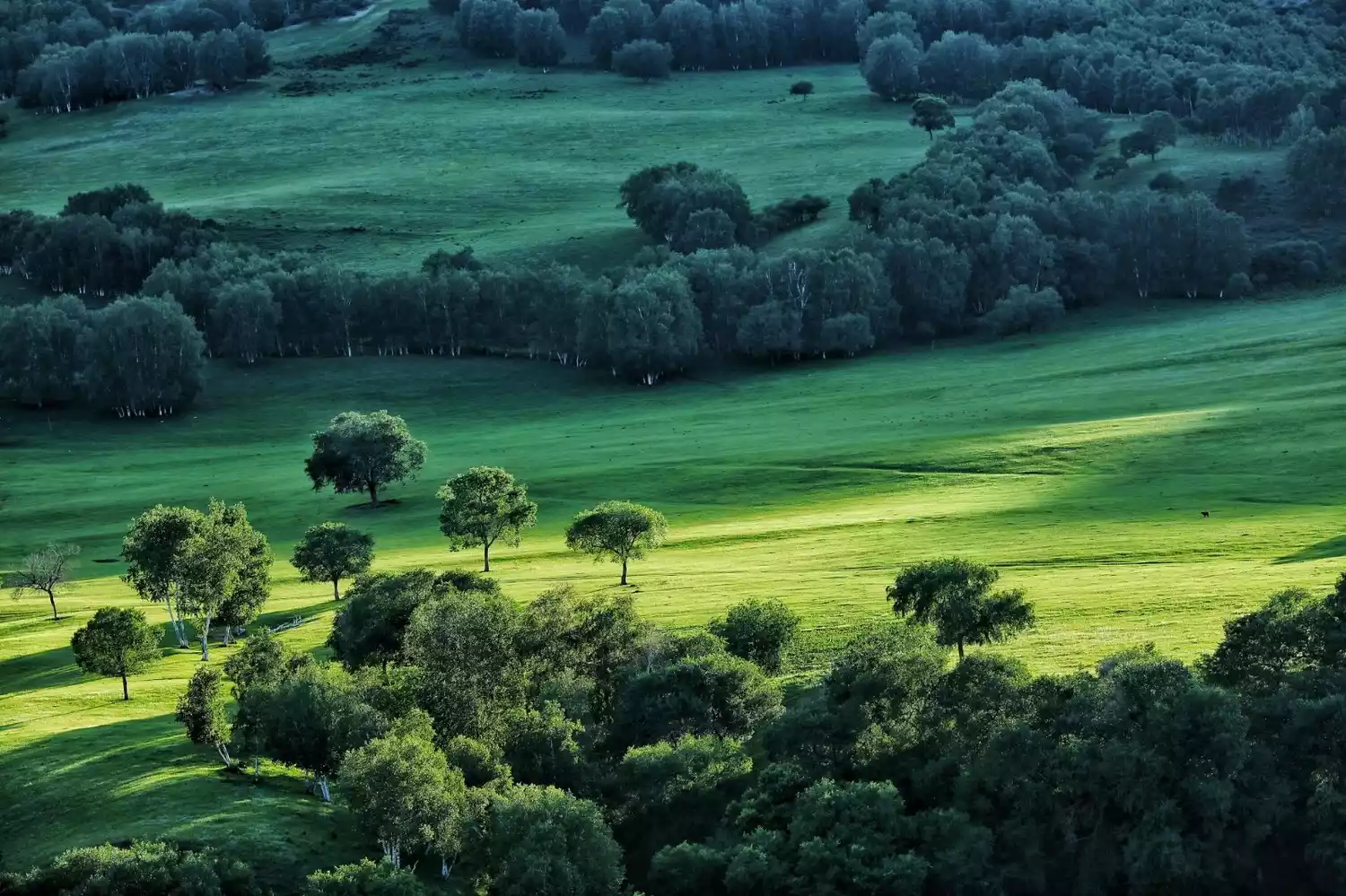 Standing on the commanding heights and overlooking the surroundings, the primeval forest looks particularly beautiful like a pearl inlaid on the grassland. In the summer, strolling in the primeval forest with gusts of cool breeze is very refreshing!