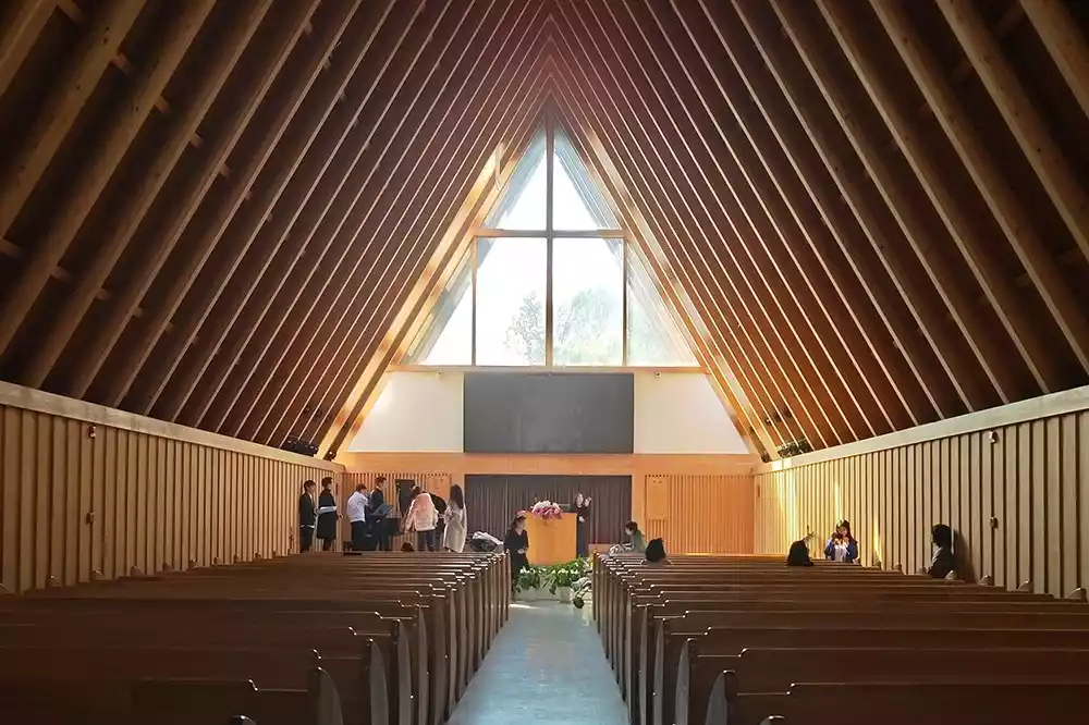 The chairs in Meilizhou Church are also of wonderful design. The backrest is at 90 degrees, which makes people sit upright unconsciously. The angel wings design on both sides of the benches adds a sense of purity and sacredness to the church.
