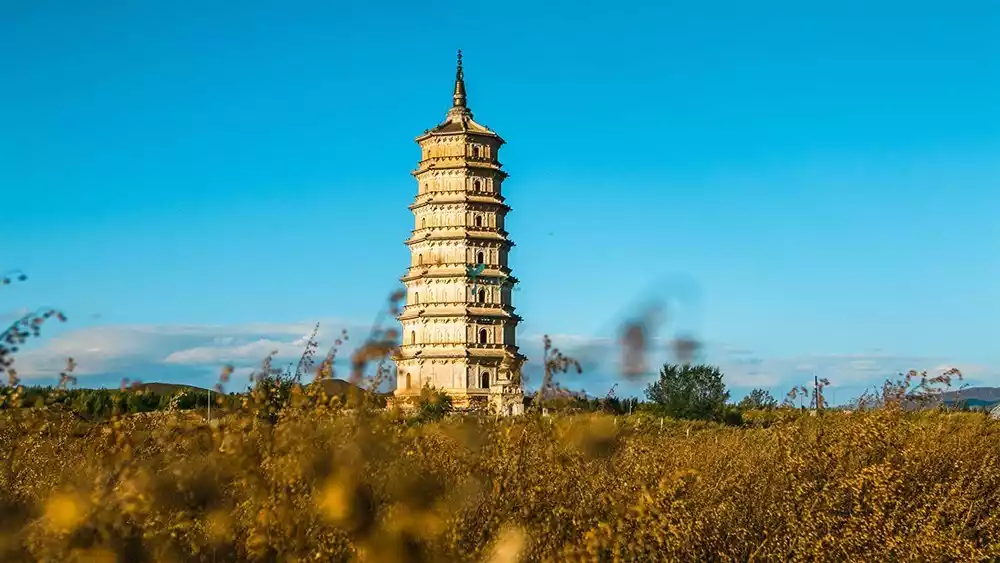 Saihan Pagoda, with a base four meters high, a tower body 42.8 meters tall, and a span of 21 meters, features seven stories and octagonal archaeological structures. It serves as a lookout for forest fires, ecotourism, a re-enactment of the Mulan Autumn Hunt, Buddhist displays, and photography opportunities for the four seasons of the Great Wall. Climbing Saihan Pagoda offers panoramic views of the vast forests of Qianliba.