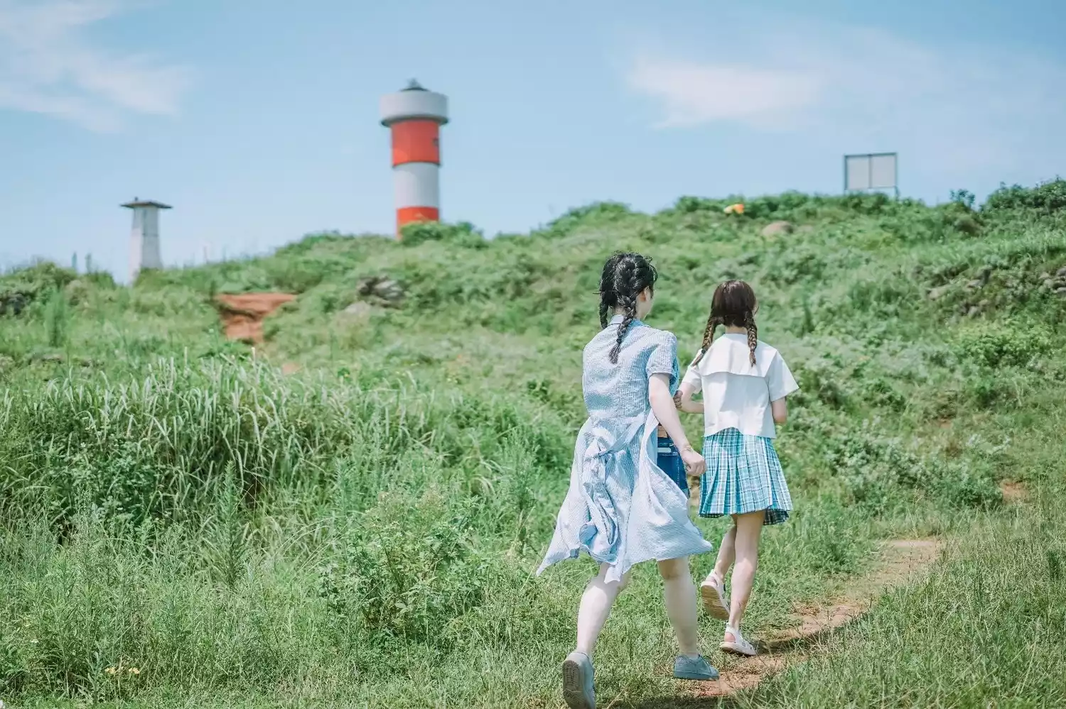 To get to Zhenhai Cape, you need to park your car at the foot of the mountain and walk for about 15 minutes to climb the small hill by the sea. Standing on the hill, you can see the lighthouse, coast and reefs.
