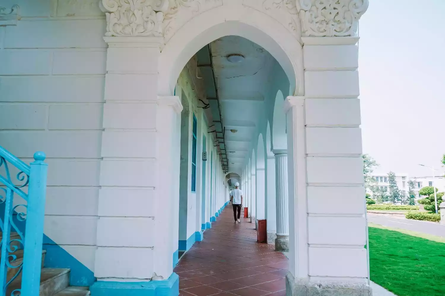 Walking inside, you will see the Navigation College. You can enter the school. Sometimes you need to register your name and phone number, sometimes not. The small Western-style buildings in the school are very beautiful, with red brick buildings all over.