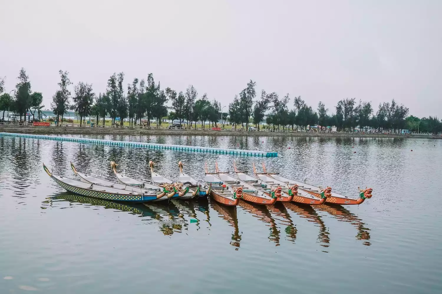 You can see the Dragon Boat Pond after exiting the gate of Guilai Garden. Dragon boat races are held here every year during the Dragon Boat Festival. It is very spectacular and lively. When there are no activities, the dragon boats will be parked nearby and you can take as many photos as you want.