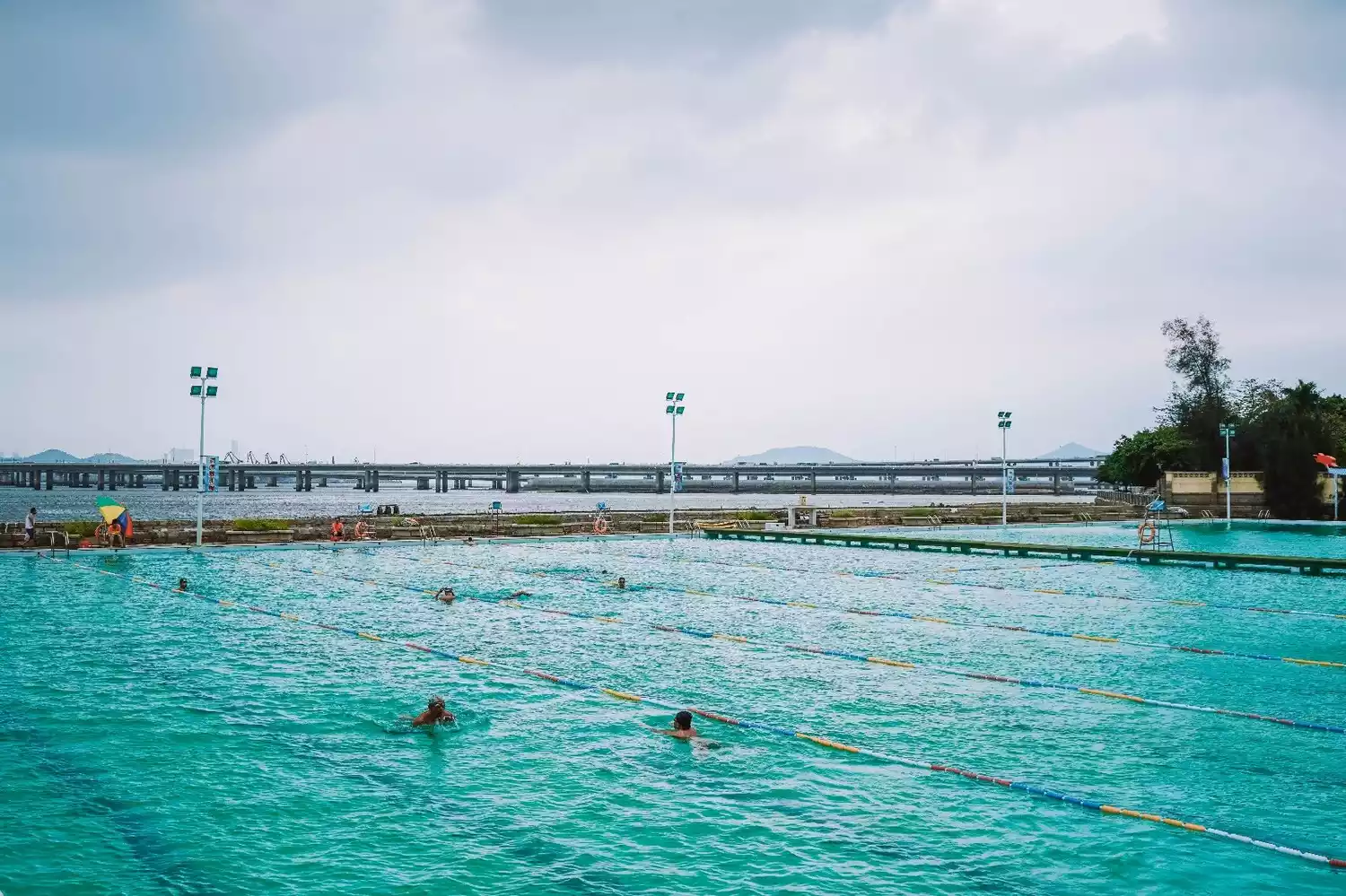 But you can appreciate the extra-long staircase next to it. Opposite the stairs is the Jimei Aoyuan Swimming Pool, which is open from 3 to 7 o'clock every day and costs 15 yuan per person. What's special is that the sea is next to the swimming pool, as if you are in an infinity pool.