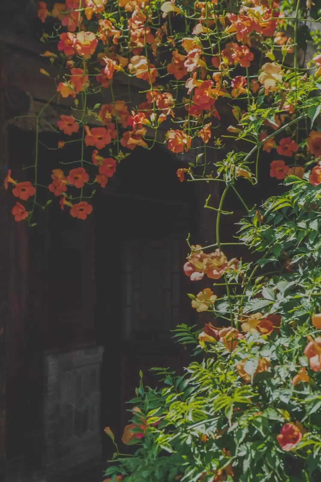 There are not only trumpet creepers, but also red pomegranate flowers and magnolias in full bloom in the house in midsummer, creating a unique scene.