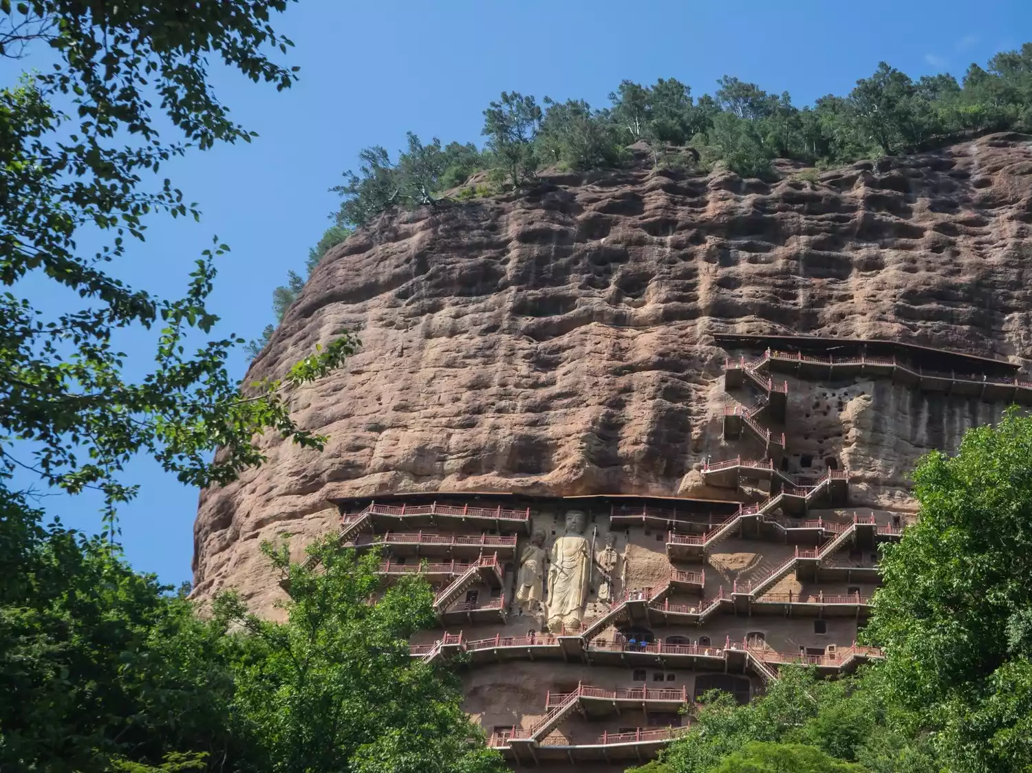 Maiji Mountain, originally a solitary peak within the Xiaolong Mountains of the western Qinling Mountains, earned its name from its resemblance to a pile of wheat in a farmer's field. More strictly speaking, Maiji Mountain is formed by the confluence of the Qinling, Helan, and Min Mountains. Its warm and humid climate allows trees to flourish here, resulting in a lush, verdant landscape that is truly a delight to the eyes.