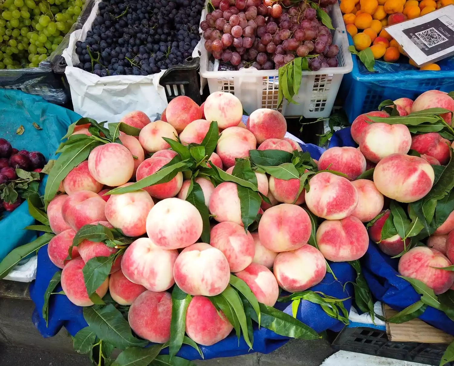 Walking briskly into the market, the peaches stacked on the street are dazzling, even more pleasing than peach soda. The vendors bring the peaches fresh early in the morning, then spray them with a thin layer of mist. The crystal-clear water droplets cling to the fuzzy surface, making you unable to move your feet, eager to buy ten pounds.