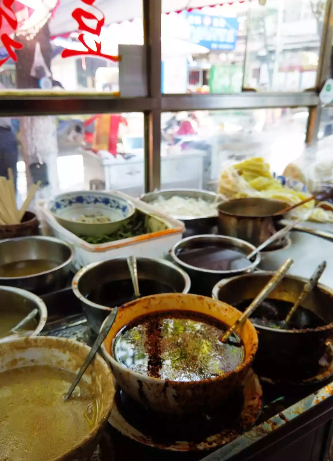 Regardless of the shop, whether it's Guagua, Ranran, or Ganmianpi, each is roughly four yuan a bowl, and the portions are generous. The flavors themselves aren't all that different, with the sour, spicy flavor of sesame paste, chili peppers, and garlic water serving as the main tones. It's just the different ingredients that create the biggest difference in texture.