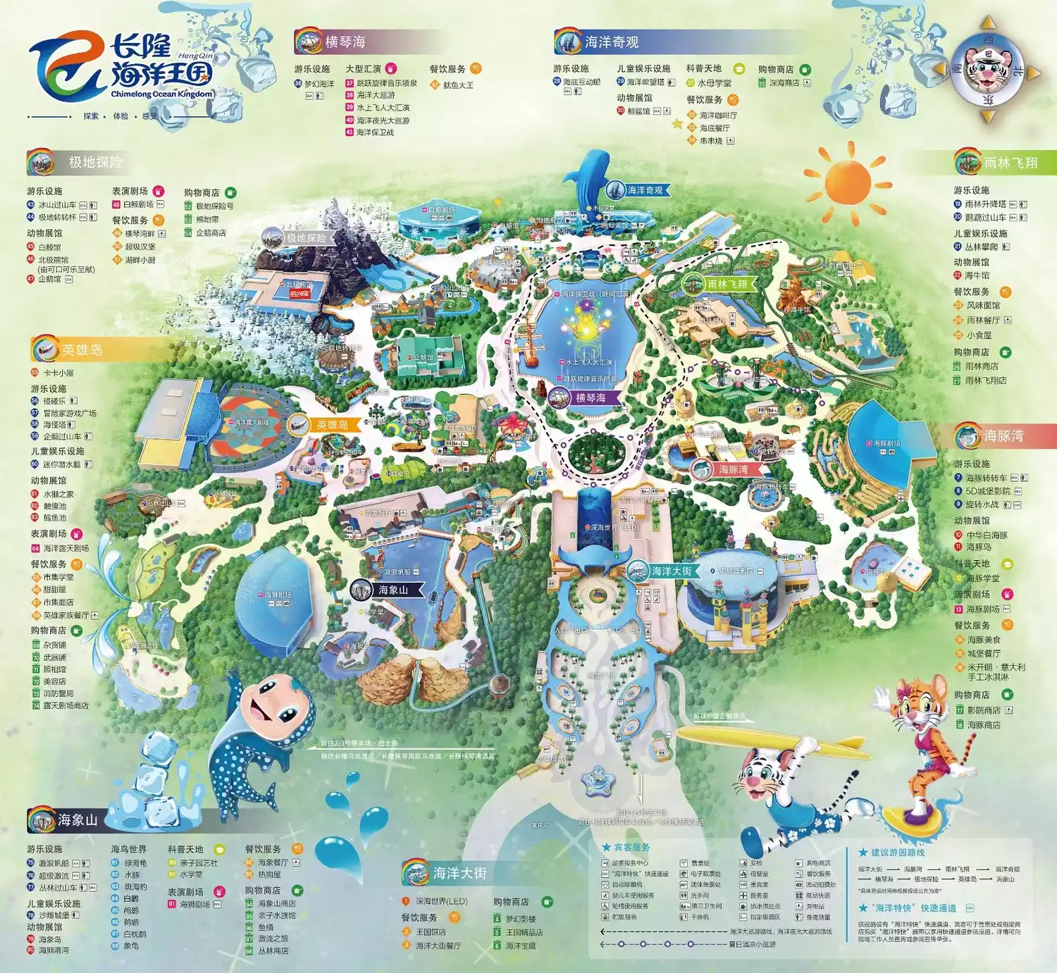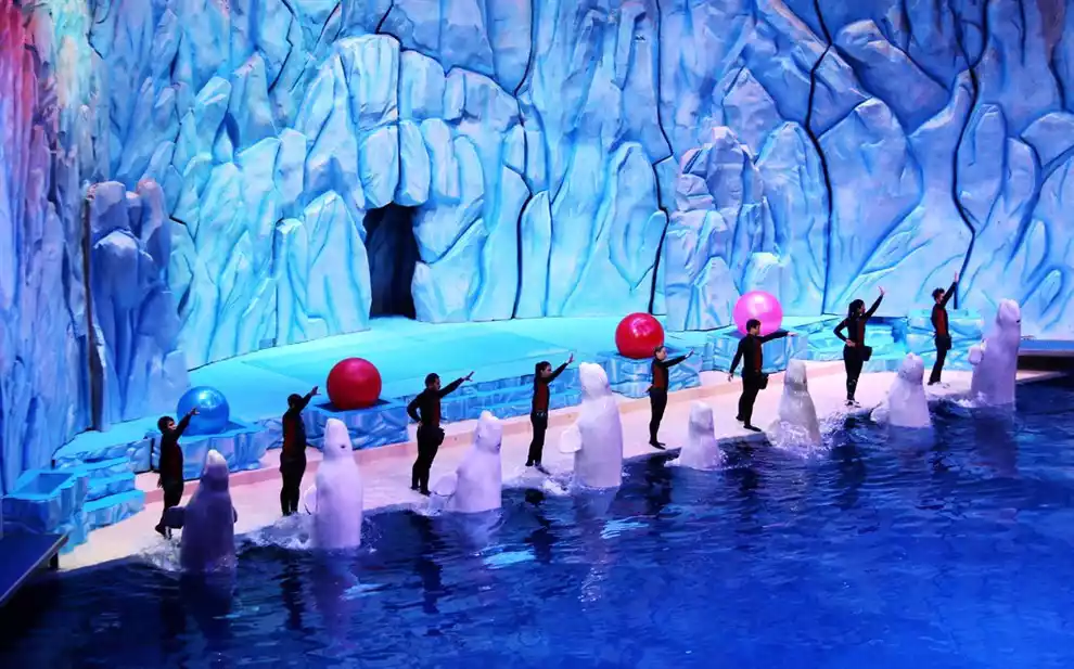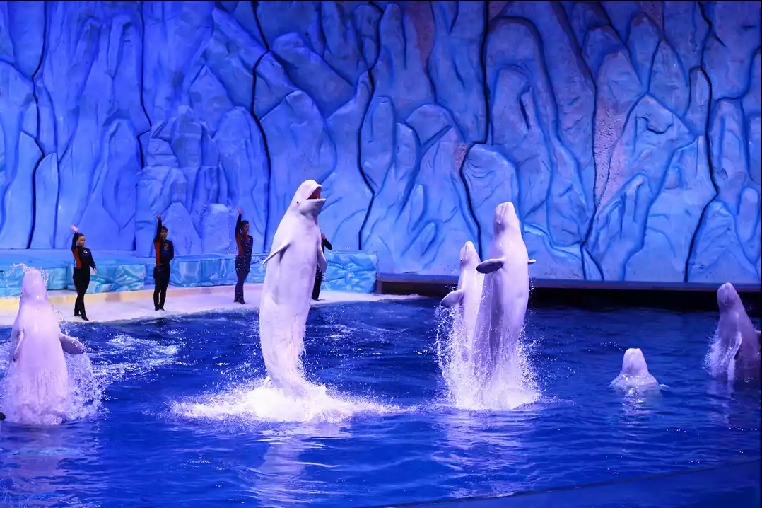 Admission (10:00) 5D Pavilion/Parrot Roller Coaster - Whale Shark Pavilion - Beluga Whale Theater - Polar Bear Pavilion - High Speed Rafting - Lunch - Penguin Pavilion - Sea Lion Theater - Ocean Luminous Parade - Ocean Defense War