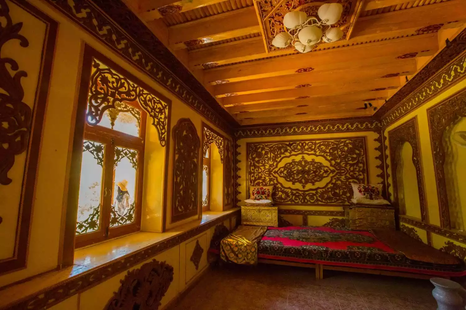 Master Bai’s mansion is located in the backyard of Afanti’s home. The overall decoration is high-end and elegant, revealing the word "rich" everywhere. The house has a wooden exterior wall and a corridor with a strong Islamic style.