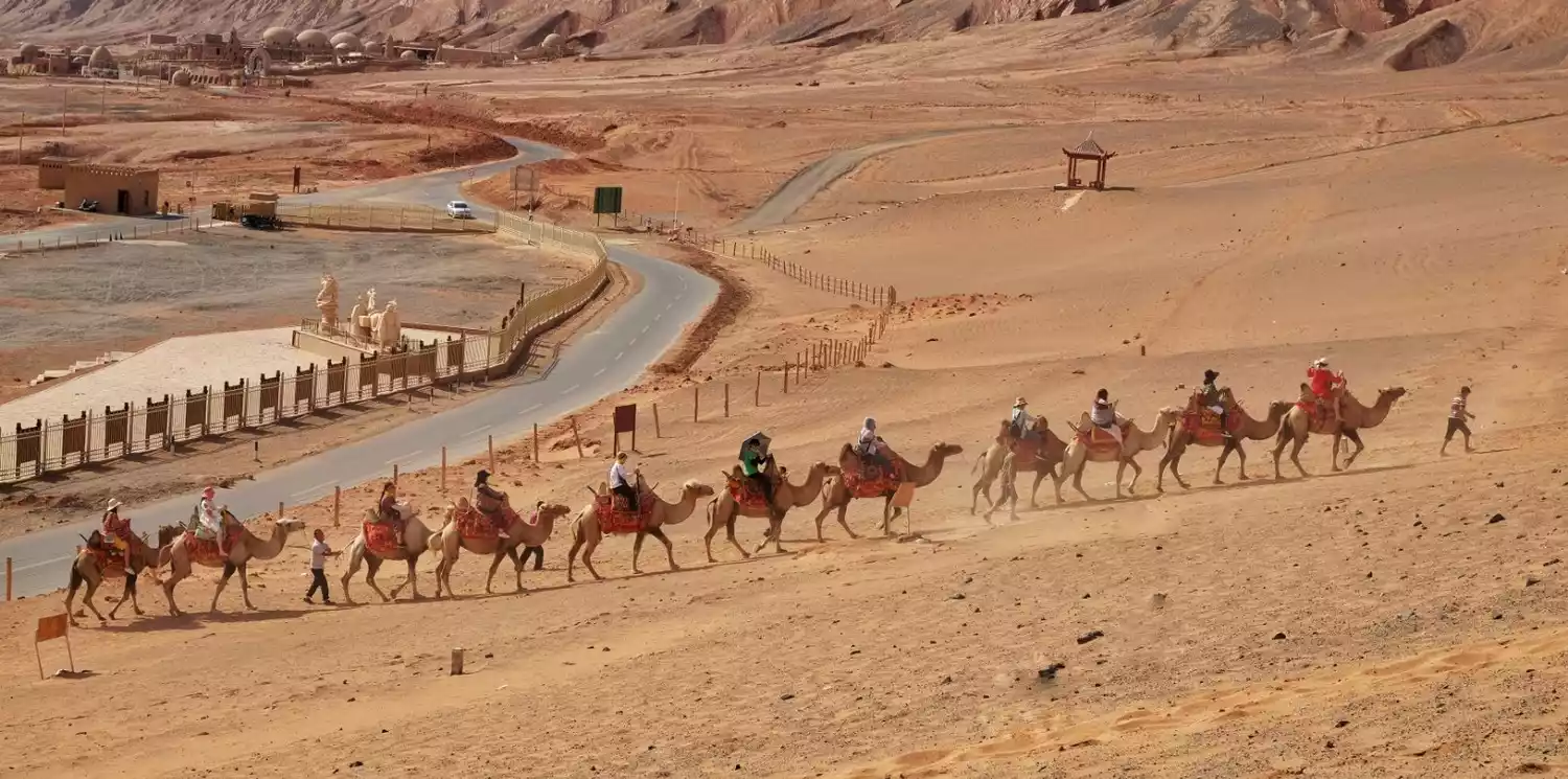 Numerous scenic spots and attractions are now based on the "Flame Mountain." For example, the 4A-rated Flame Mountain scenic area, located along National Highway 312, features a giant land-based thermometer, which monitors the ground temperature in real time. A statue depicting Tang Monk and his four disciples on their journey to the West stands there, welcoming visitors from all directions.