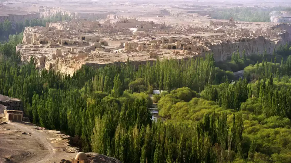 About 10 kilometers west of Turpan City, Xinjiang, there is a "capital without city walls". It is more than 2,000 years old. It was built by the people of the Cheshi Kingdom, one of the 36 countries in the Western Regions, on the alluvial fan (a willow-shaped river island) at the southern foot of Bogda Mountain in the Turpan Basin.