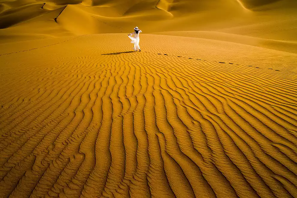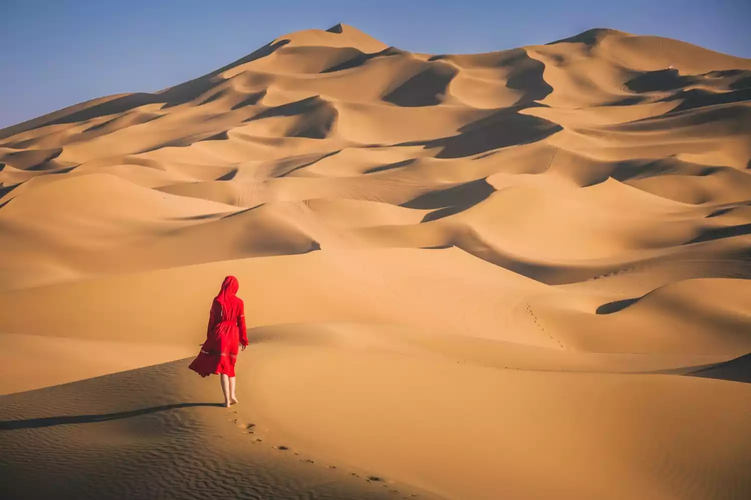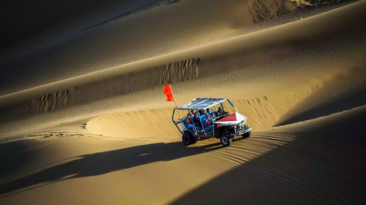 If you are on a day trip, you might as well experience the desert surfing car. After entering the scenic area in the evening, you can go to the sand hill to wait for the sunset. After sunset, take a desert surfing car and face the uneven terrain of the desert, letting the car run wildly and ups and downs in it.