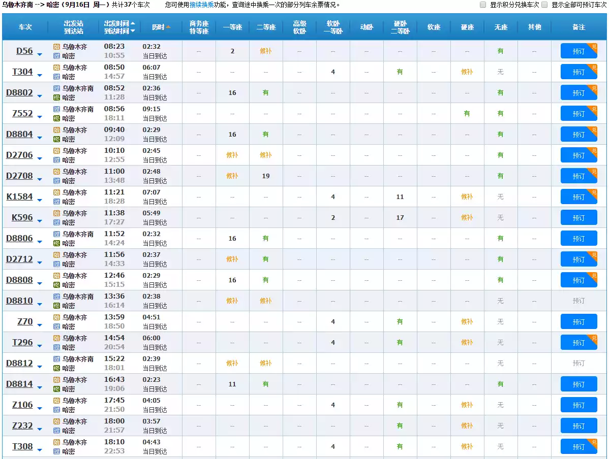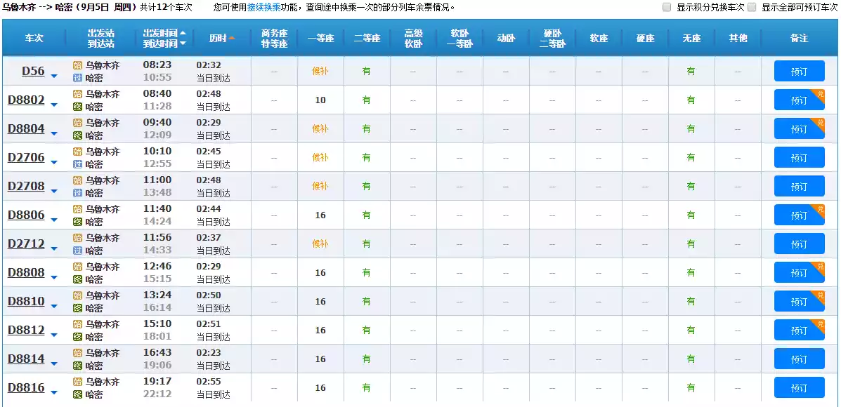 There are numerous trains running from Urumqi to Hami, including K-trains, T/Z-trains, and D-trains. The high-speed trains offer a wide variety of options and are convenient, making them the preferred mode of transportation. High-speed trains only take about two and a half hours, while trains are longer, making them the preferred choice.