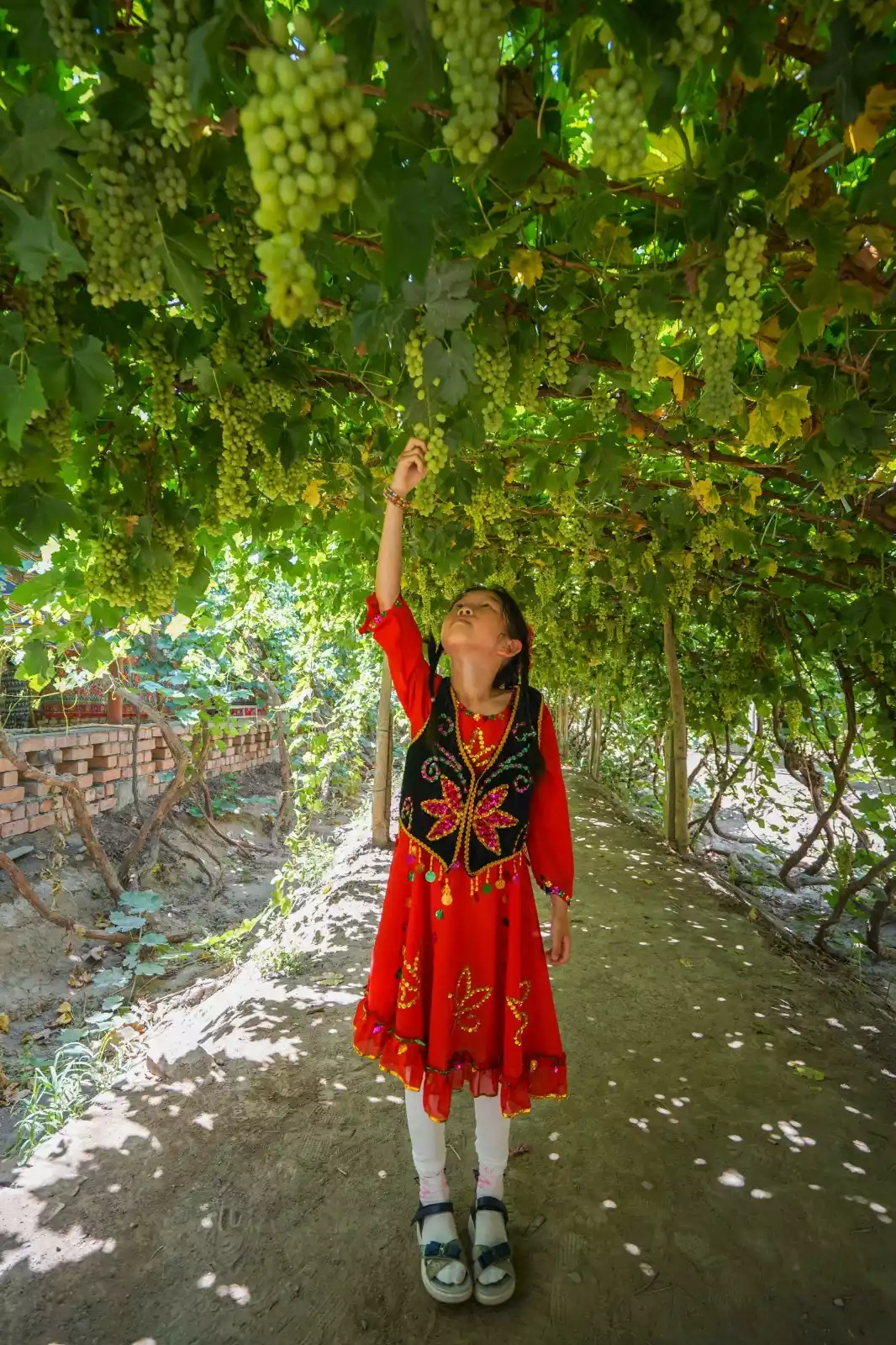Surrounded by barren deserts, Turpan boasts numerous oasis valleys, one of which is Grape Valley. This long, narrow, and gently sloping valley stretches approximately 8 kilometers from north to south and 2 kilometers from east to west. Locals call it "Buyiluke," meaning "a place planted with grapes."