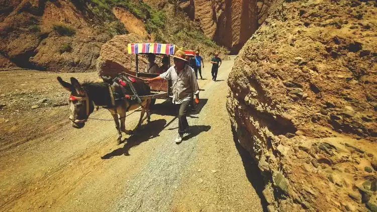 When tourists come, these donkeys are like the Rolls-Royces on this ancient road. The donkeys walk slowly through the canyons and pass through layers of stone gates on the mountain roads.