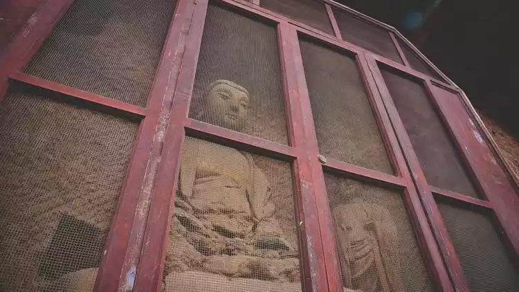 The steps and statues of Maiji Mountain are covered with such fine mesh, unlike the airtight enclosures of the Dunhuang murals. This is mainly because the climate in southeastern Longdong is relatively humid, and an open and ventilated environment is more suitable for the preservation of sculptures, while the fine mesh protects the statues from damage by forest birds.