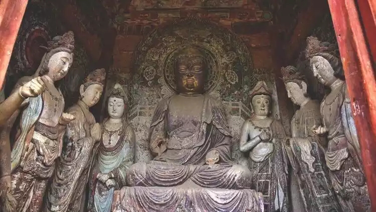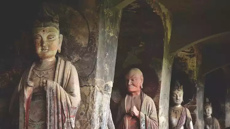 The Sanhua Tower was built in the Northern Zhou Dynasty. The Buddha niche is deep into the stone wall. The shadow sculptures and murals in the niche still retain the original works of the Northern Zhou Dynasty. This is also the most wonderful part of the eastern cliff of Maiji Mountain, where sculptures and murals are wonderfully integrated together.