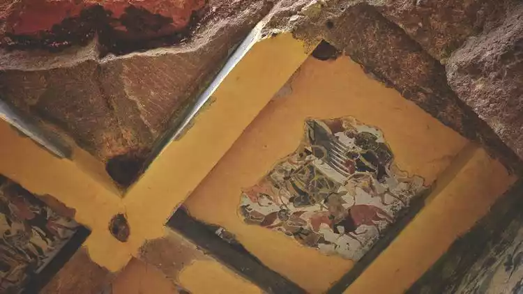 A special reminder: remember to look up at the Tang Dynasty murals on the top of the cliff. The galloping horses in this Western Pure Land Transformation painting change scenery and are cleverly created using optical illusions.