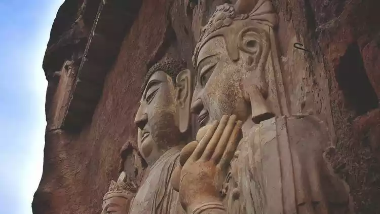 Maiji Mountain is a treasure trove of grottoes and sculptures. There's only one path to Maiji Mountain, and following the trail, you'll see statues from different eras. The sculptures are bizarre and unique, ranging from the flowing robes of Wei and Jin dynasty literati to the voluptuous figures of the Tang Dynasty, and even some slightly cartoonish figures from indeterminate eras.