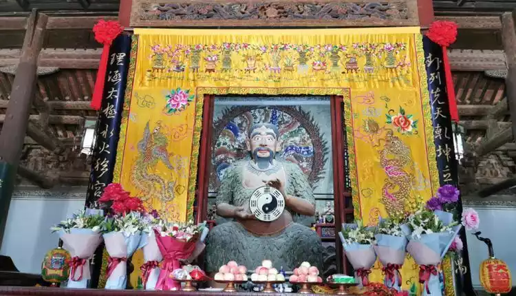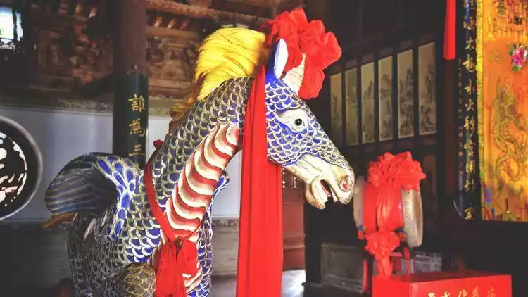 Entering the main hall, there is a unique statue of Fuxi, surrounded by a creature that looks like a horse but is not a horse.