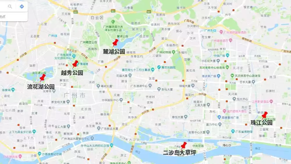 The map above shows several locations in Guangzhou that are convenient for transportation and suitable for beginners of night viewing.