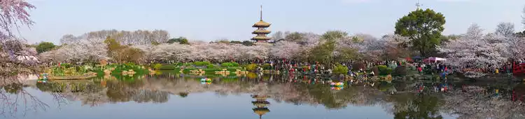 As its name suggests, East Lake, located east of Wuchang, Wuhan, is China's second-largest urban lake. It's divided into four distinct areas: Listening to the Waves, Moshan, Falling Wild Geese, and Chuidi. (The following appears unrelated to the preceding text:) Listening to the Waves for leisure, Moshan for flower viewing, Falling Wild Geese for birdwatching, and Chuidi for mountain touring.