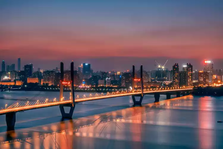 On a spring night, it's a pleasure to come here and feel the river breeze, experience the tranquility of Wuhan, and watch the night view of Hankou River Beach across the river.