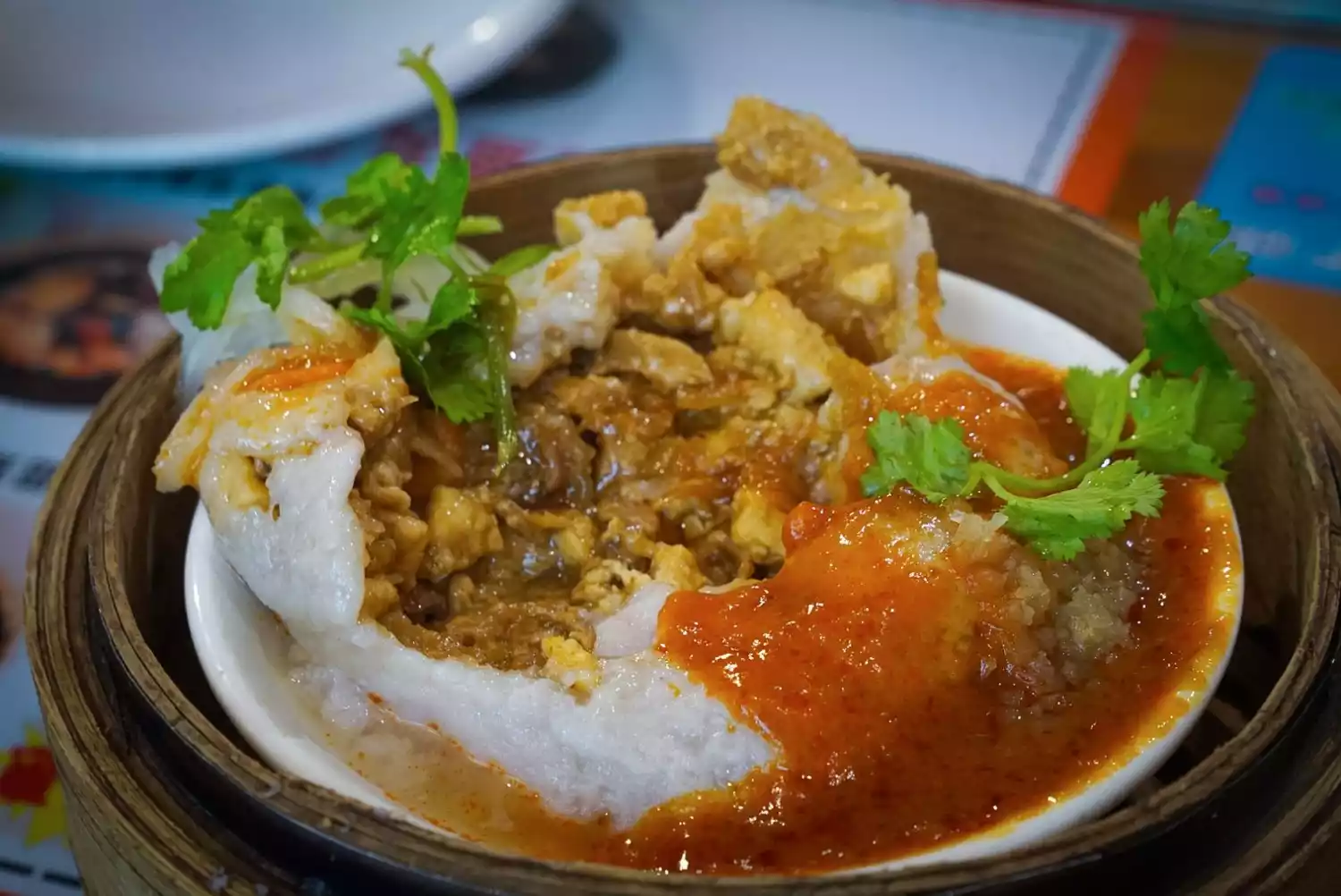 This shop has been open for decades, specializing in Minnan-style braised pork dumplings. Ingredients include fragrant and tender braised pork belly, mushrooms, chestnuts, egg yolk, and dried shrimp, creating a rich, layered flavor that's distinct from the traditional Jiangsu and Zhejiang varieties. The cilantro and sweet and spicy sauce add the finishing touch.