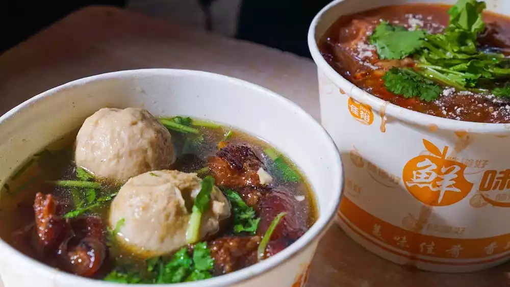 Xiamen is known for its shacha noodles, but did you know that we're also famous for our shrimp noodles? Leading the way is Ming Yue Shrimp Noodles, located right next to Lao Song Dumplings. They use shrimp heads and shells to create a rich broth, then add vinegar pork, fish balls, small intestines, lean shrimp, and other condiments to enjoy alongside the noodles. The broth is incredibly fresh, with a rich shrimp flavor!