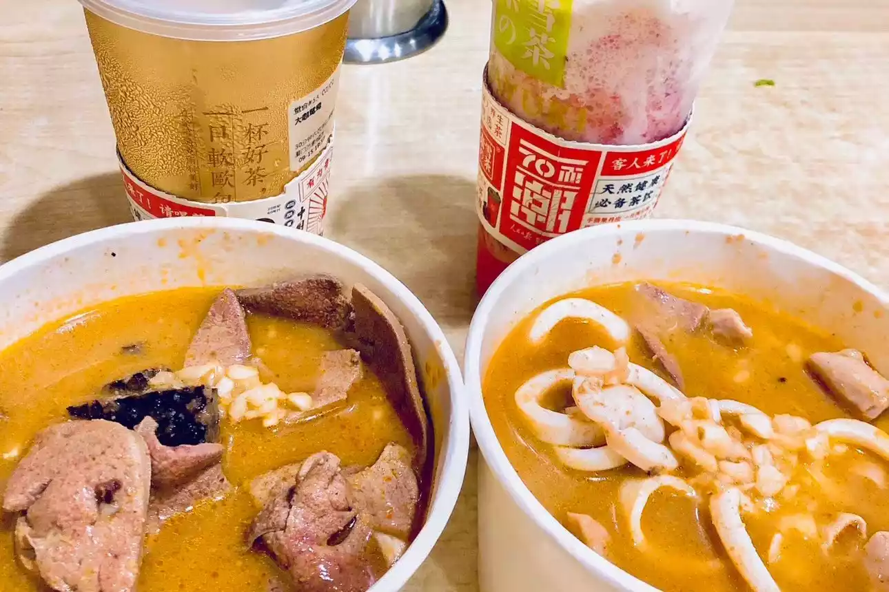 Hidden away in a small alley on Zhongshan Road, it's a must-see. The broth is rich and flavorful, tinged with the aroma of peanut butter. The noodles are thick, soft, and incredibly flavorful. You can choose toppings from the restaurant or choose your own. Tofu, fried dough sticks, shrimp, squid, duck gizzards, and more are all soaked in the broth, making them incredibly delicious!
