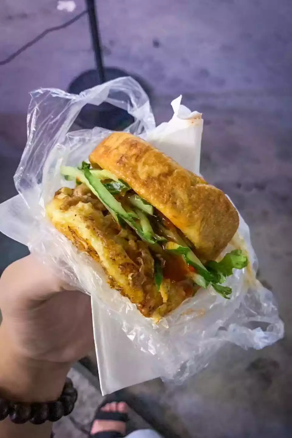 This legendary street vendor, which will be celebrating its 20th anniversary next year, opens around 2 PM every day, rain or shine. They've always had the longest lines. You can smell the aroma from afar, and their egg burgers are perfectly fried on both sides, generously topped with fillings. It's incredibly delicious!