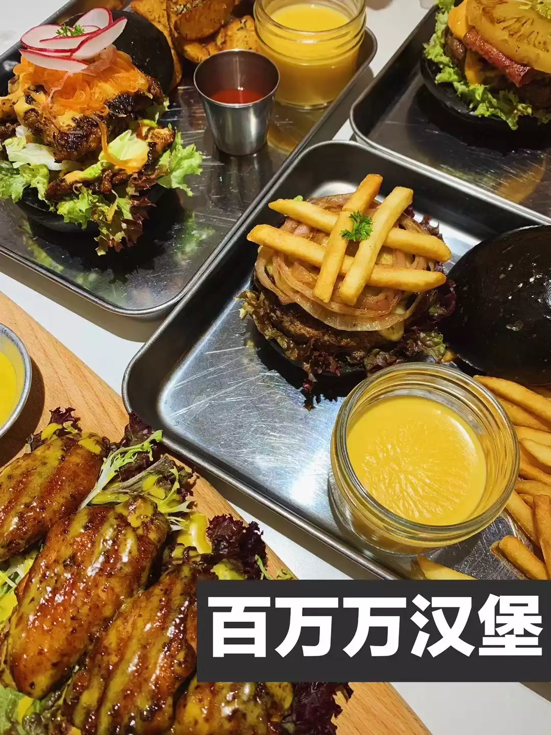 The shop's signature dish is the black burger, infused with squid ink. The bun is soft and slightly sweet, making it delicious without being overpowering. They don't have a wide selection of burgers, but the Hawaiian beef burger, mushroom beef burger, and BBQ pork burger are all incredibly delicious, and their recently introduced foie gras burger is irresistible.