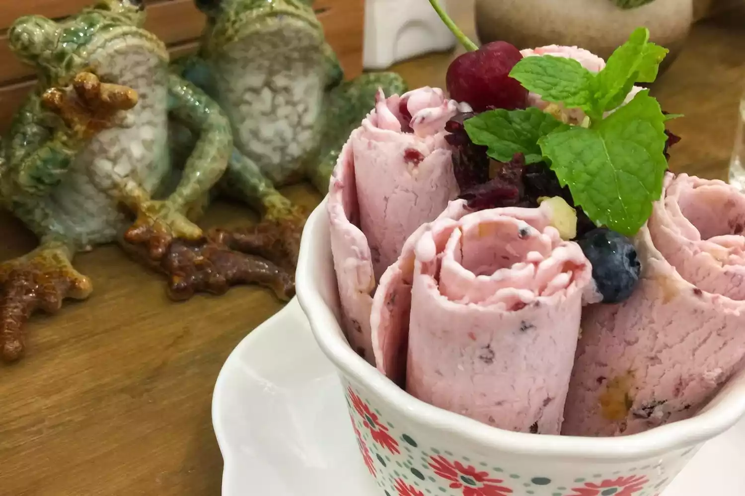The Instagram-famous Thai fried ice cream has landed in Shapowei, featuring a bright, clean, and simple palette. Each ice cream is made with fresh, locally available fruit, fried to order, ensuring a worry-free experience. The cream is incredibly refreshing, and the ice cream is topped with a variety of colorful additions like nuts, seasonal fruits, and marshmallows. The vibrant colors are sure to whet your appetite!