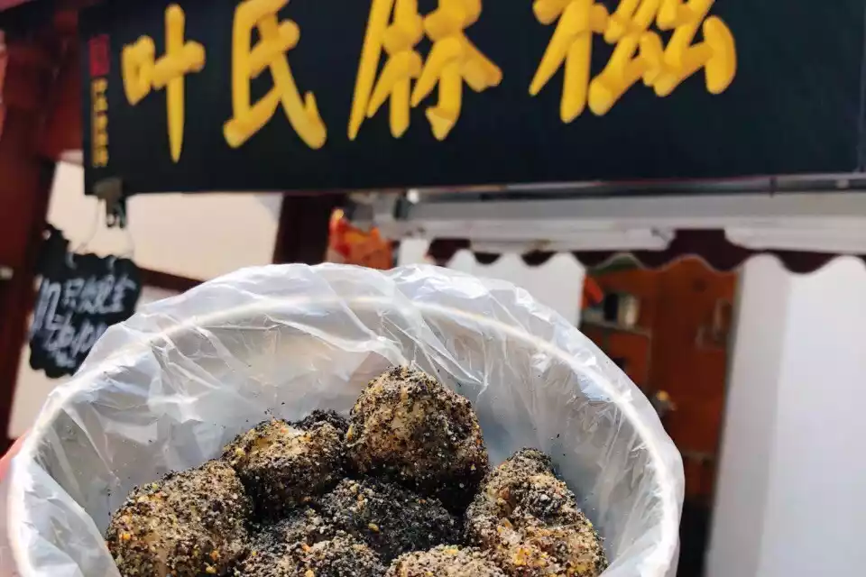This tradition, spanning a century, begins at 8 a.m. Every day, the stall owner sets out early, expertly pulling out the drawer beneath his cart and taking out a glutinous rice cake. He then rolls it in a filling made from crushed peanuts, black and white sesame seeds, and powdered sugar, kneading it into a ball and coating it in black sesame powder. Mochi is ready. It's sweet but not greasy, glutinous but not sticky, and incredibly delicious.