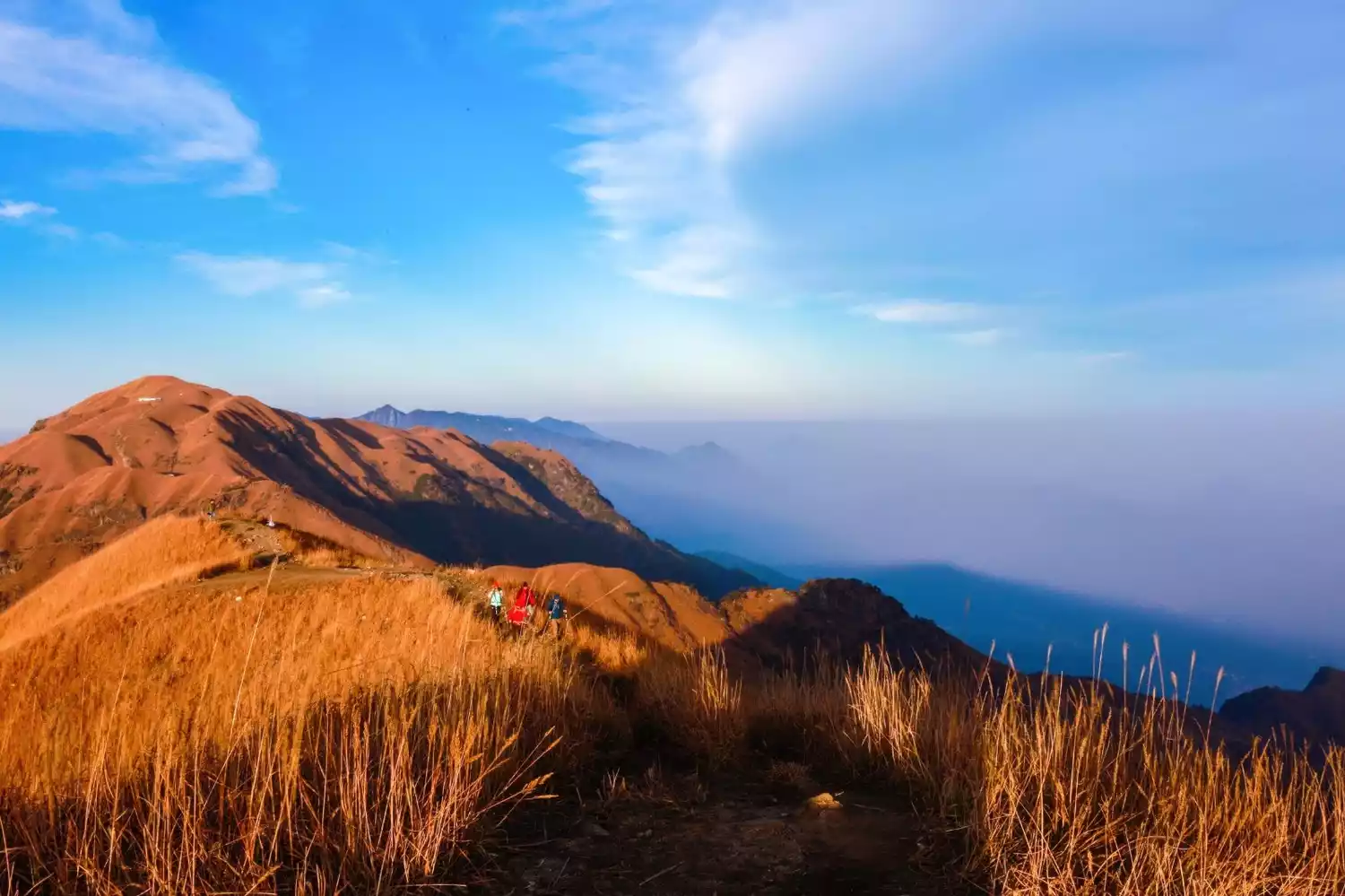 Wugong Mountain is famous for its waterfalls, alpine meadows, and golden-top ancient altars. It is known as the "grassland in the clouds, outdoor paradise". 100,000 acres of meadows stretch to the top of a mountain over 1,600 meters high. It is green in spring and summer, golden in autumn, and white in winter.