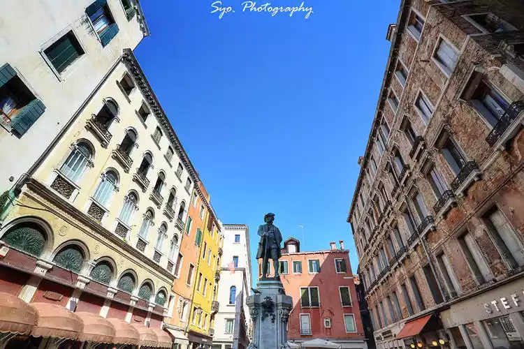 Looking at Google, you will pass through a series of arcade buildings on the west side of St. Mark's Square and pass the Water City Shopping Street. From here you will walk all the way to the San Moise Church and Via ⅩⅩⅡ Marzo (March 22nd Street).