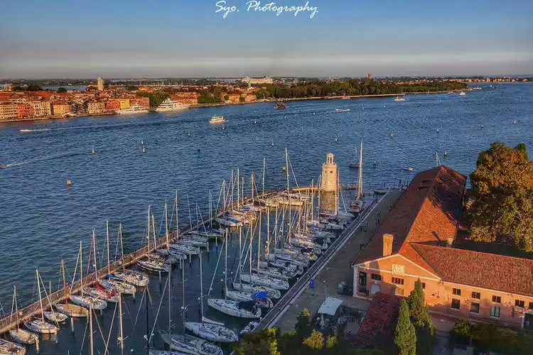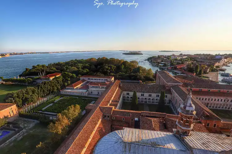 In addition to seeing St. Mark's Square, known as "the most beautiful living room in Europe", you can also get a bird's eye view of the Church of San Giorgio Maggiore and Giudecca Island.