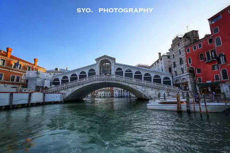 There are fewer people going to the Rialto Bridge in the morning, which is much more comfortable than during the day.