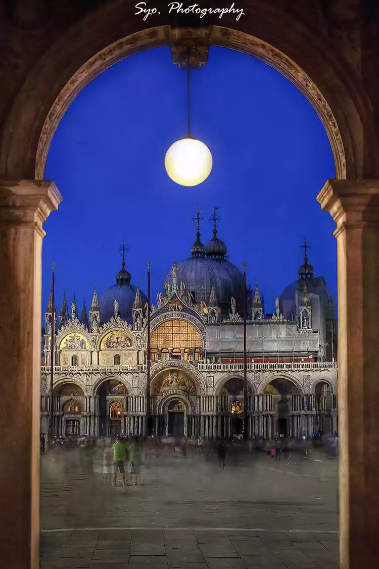 After taking pictures of the sunset, return to St. Mark's Basilica and continue taking night photos.