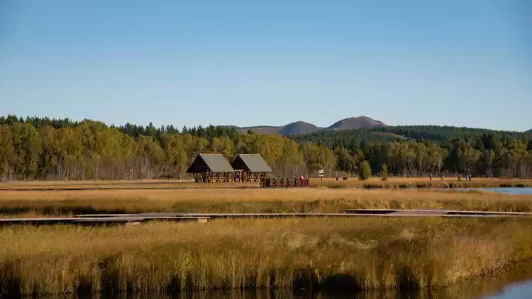 Here, you can watch the sunrise from the lake in the early morning, and then gallop all the way on the wild road. The savanna on the roadside flashes by frame by frame, and the setting sun hits the wheat-colored reeds in the wetland. On the top of the mountain, you can watch the stubborn sun finally set reluctantly, and the crimson sunset releases the last afterglow of the sun.