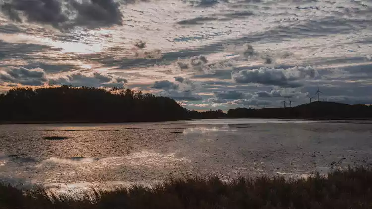 Seven lakes, large and small, dot the vast wetland park, resembling the Big Dipper. Ducklings swam in the lakes, catching fish. Nearby, a wooden windmill nestled among the grass. Amidst such stunning scenery, it felt a pity not to witness the sunrise over Seven Star Lake.