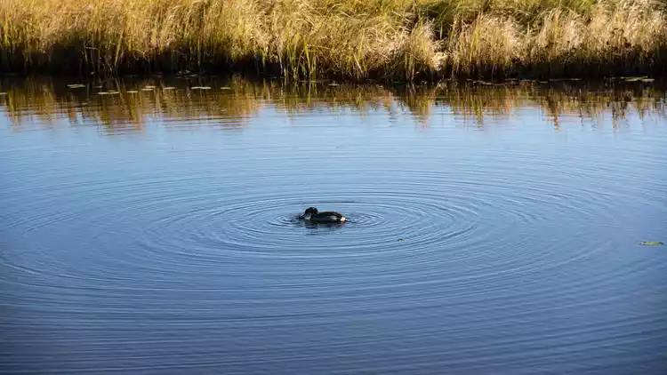 Then we followed the road to Sun Lake. Autumn had arrived, and the wetland park was filled with unparalleled autumn colors. The reeds that had faded to wheat color could no longer obscure the mirror-like lake.