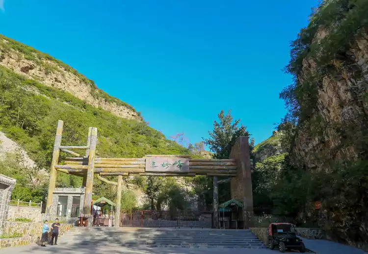 Sanmiao Peak is located in Xingtanggou, Shunping County, Baoding City, Hebei Province. The canyon stretches over 10 li (approximately 10 km) and its main peak, Sanmiao Peak, rises 1,016 meters above sea level. A branch of the renowned Taoist mountain Qingxu, the area boasts a vibrant mix of mountains, valleys, streams, creeks, and waterfalls. Springs flow from the mountain's summit to its base, and the valley itself contains numerous cultural relics, including those related to revolutionary, Taoist, and Buddhist traditions.