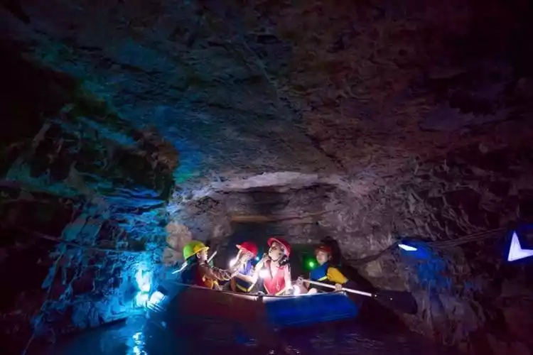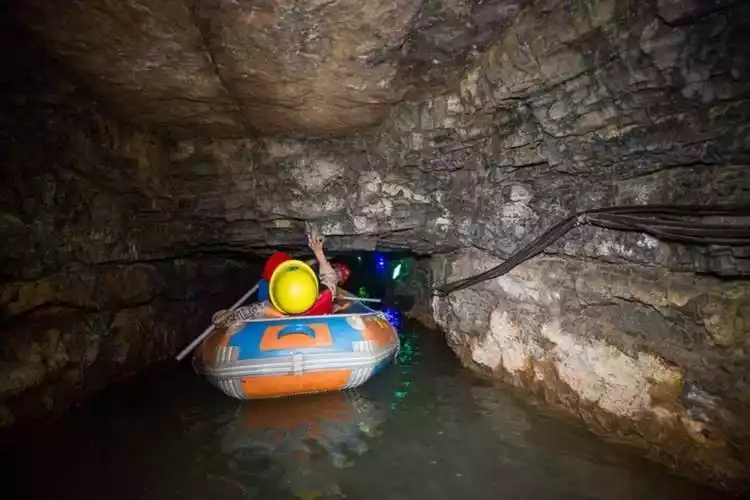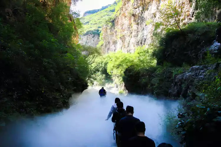 The only cave rafting site in North China, this 5-li (1.5-kilometer) long rafting experience offers the sound of rushing water even in the dry season. Kayak in and out, navigating through seven caves, some as high as ten feet and some as low as your head. Some require you to lie half-down on a boat to navigate. Floating through the deep caves, sometimes reaching a dead end, sometimes revealing a new light, feels like a journey through seven days and nights. The caves are home to a unique species of blue dragonfly, and the sound and light within the tunnels create a sense of discovery.
