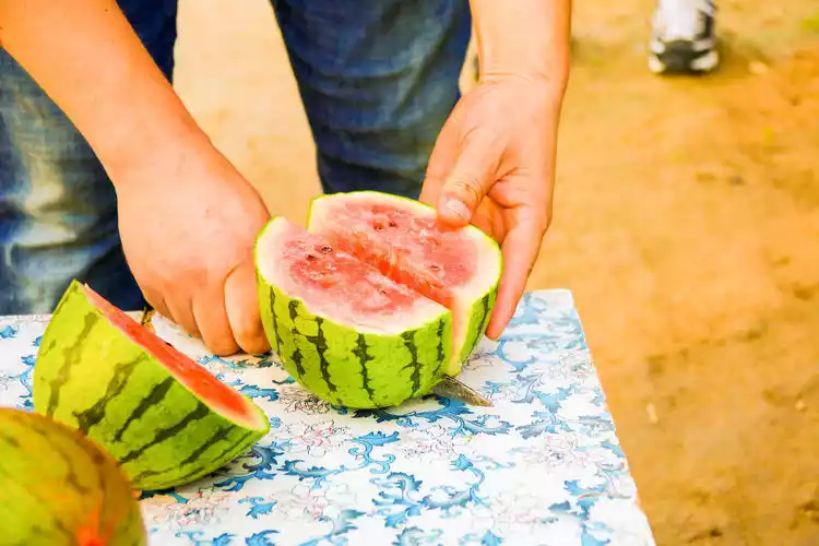 Mid-July, Okubo: Juicy, sweet, peelable flesh, high price.