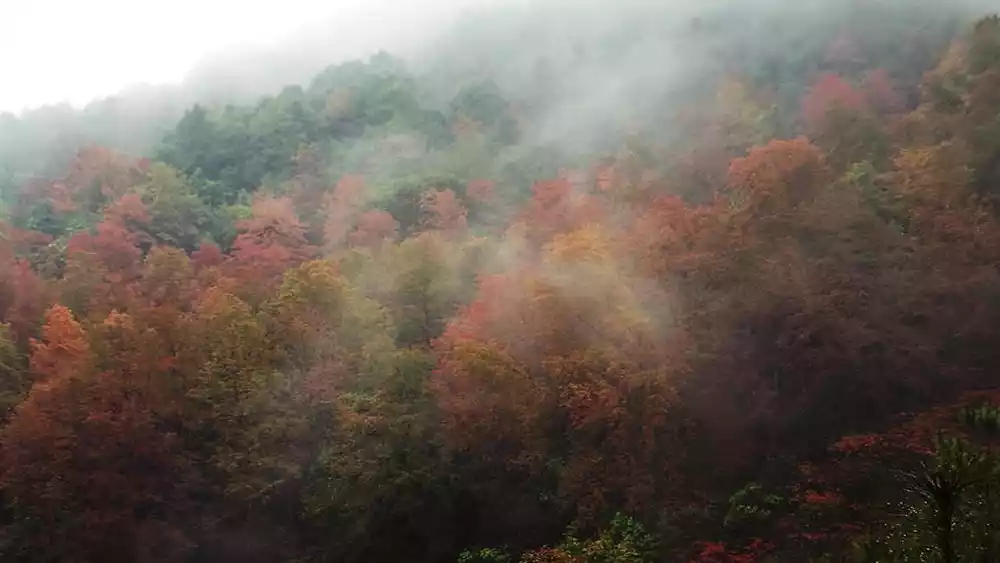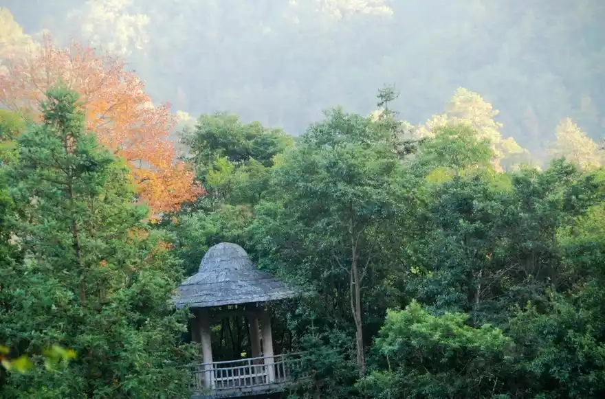 Walking to the right is the place where red maples are most concentrated in the scenic area, and it is also the place where you can go directly to the top of the mountain. Before reaching the place where maple trees are most concentrated, you need to walk about 1.1 kilometers to reach the stepped section of the scenic area, which is the entrance to the scenic area.