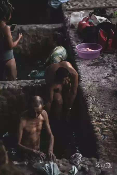 The "bathhouse meeting" is a Lisu tradition with a history of over 400 years. During the New Year, members of the tribe, along with their children, gather at Denggen Hot Springs to take a "spring bath" in the holy water, meant to wash away impurities. Traditionally, men and women bathed together without reservation, creating a sense of detachment and a sense of transport back to a distant, more primitive era.